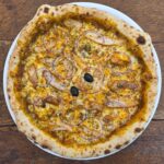 Base tikka massala, poulet tikka, oignons, persillade, mozzarella, olives