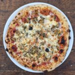 tomate, mélange de fruit de mer, persillade, mozzarella, olives